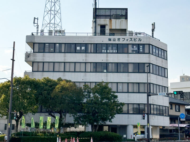 当社は、徳山オフィスビルの4階に拠点を構えています。駅からもアクセスしやすく、周囲には緑も多く落ち着いた環境が魅力です。